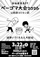 じいちゃん、ばあちゃん、とおちゃん、かあちゃん、若者、こども、ちびっこ、みんなでチッチのチー!ベーゴマ大会です。参加でもらえる金券でミニ駄菓子屋体験もあるよ! ベーゴマ勝負は回せるようになるとものすごく楽しいけど、軸のない鉄の塊ベーゴマ、まずは紐を巻くところが大きな山。そこで今年は二コブの巻くのが難しい紐だけじゃなくて、簡単に巻ける日三巻きの紐も用意します。ベーゴマはコミセンにあるので持ってなくても大丈夫!試合はコミセンのベーゴマで行います。ベーゴマは参加賞としてお持ち帰りください。優勝者にはデコベーを用意しています。